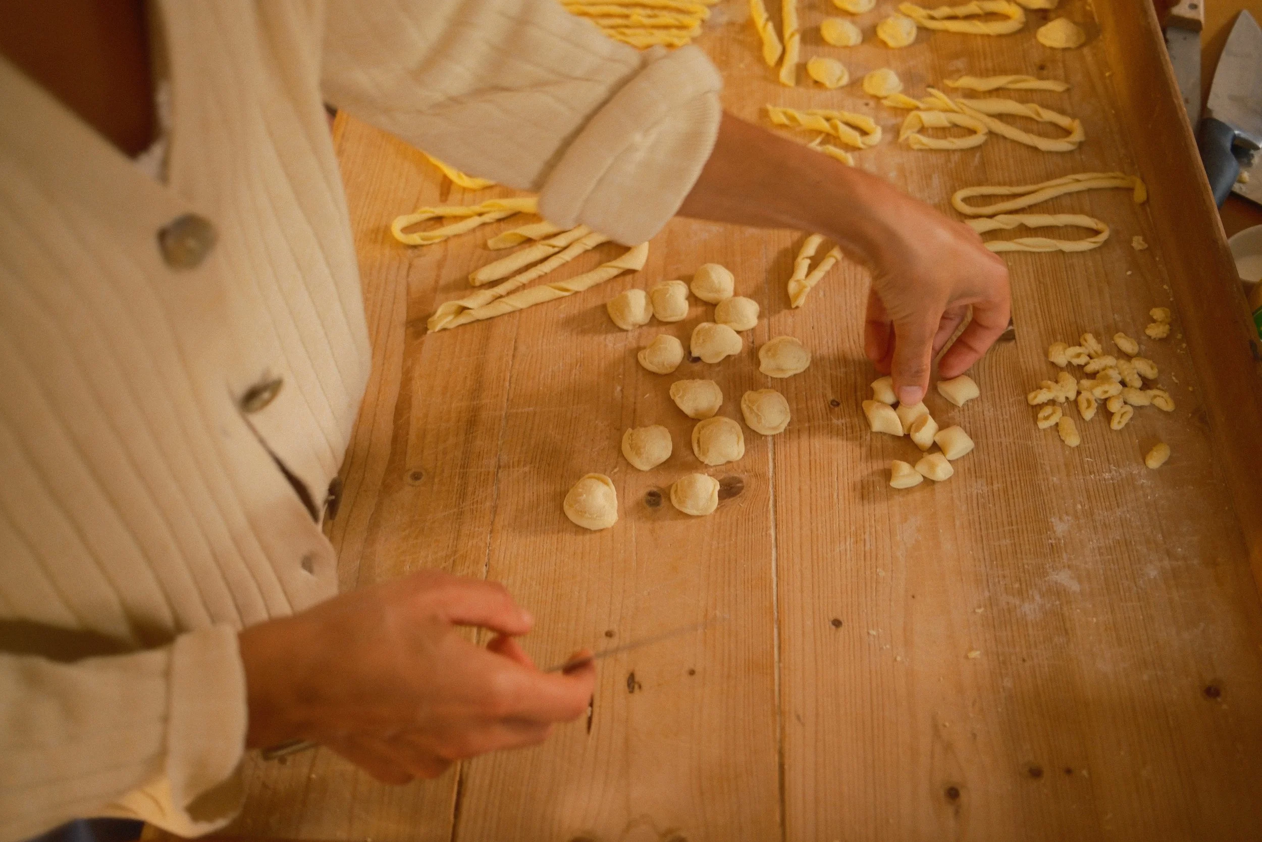 Erlebe die Kunst der apulischen Pasta! In diesem Workshop arbeitest du mit Semola rimacinata und lernst, wie man traditionelle Formen wie Orecchiette, Cavatelli und Maccheroni von Hand kreiert. Wir starten mit einem Aperitivo, formen den Teig, entdecken regionale Techniken und genießen anschließend unsere frisch zubereitete Pasta mit typischen Saucen und einem süßen Dolce pugliese.